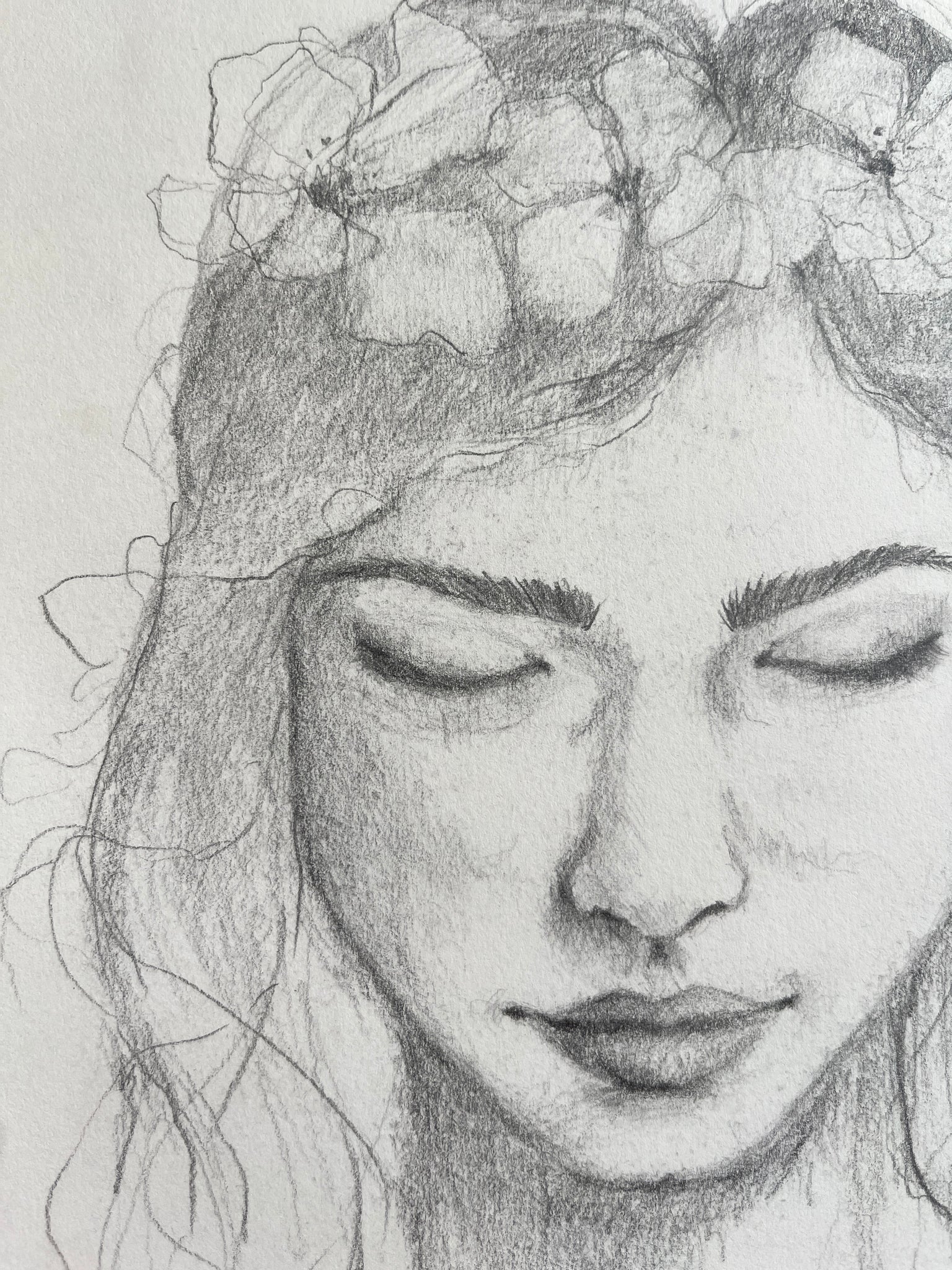 An original pencil sketch from the “Flora Donna” collection, combining the elegance of the female form with delicate floral details. Soft lines and subtle shading bring both figure and blooms to life, creating a piece that feels intimate and timeless. Perfect for adding sophistication to any modern home, and it pairs beautifully with Angele’s floral watercolor artwork.