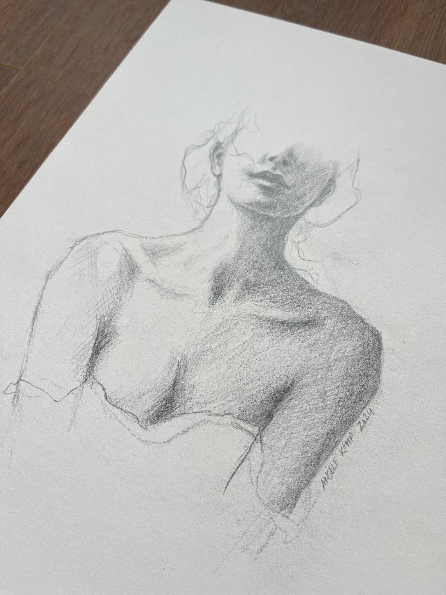 An original pencil sketch from the "Shadows of Her" collection, capturing the elegance and grace of the female form. Delicate lines and subtle shading bring each figure to life, creating a piece that feels intimate and timeless. Perfect for adding sophistication to any modern home, and it pairs beautifully with Angele’s floral watercolor artwork.